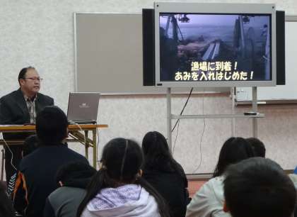 大阪市漁協の方をお招きして、大阪の漁業について環境問題もまじえながらお話していただきました。