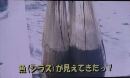 中段:シラスをクレーンで揚げている様子です。約1トン(1000Kg)もあるそうです。