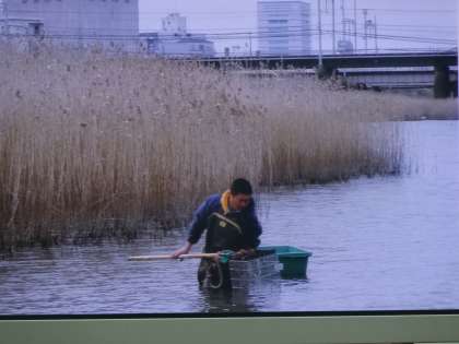 下段:淀川のしじみ漁です。十三の少し下流です。