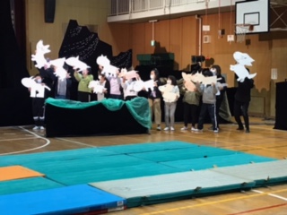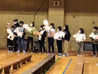 今日のリハーサルは、作成したヤギとオオカミを持って演技をしました。