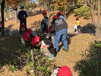 子ども達は、どんぐりを見付けては、友達に声をかけて