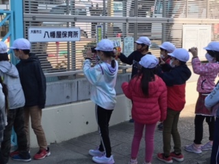 先週は、八幡屋小学校から北側の町をたんけんしました。
