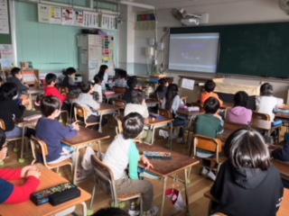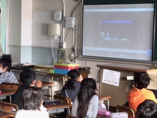 2年生の子ども達が 視聴している様子です。