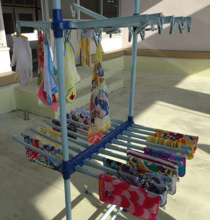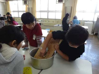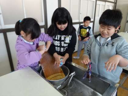 家庭科室で、洗濯板を使って、ハンカチなどを洗ってきれいにしました。