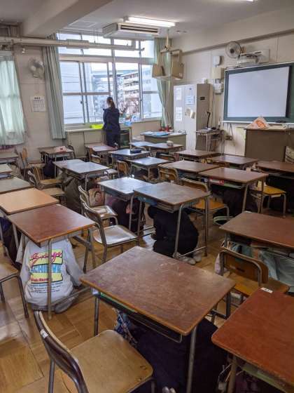 初めに、各教室で学習しているときに、