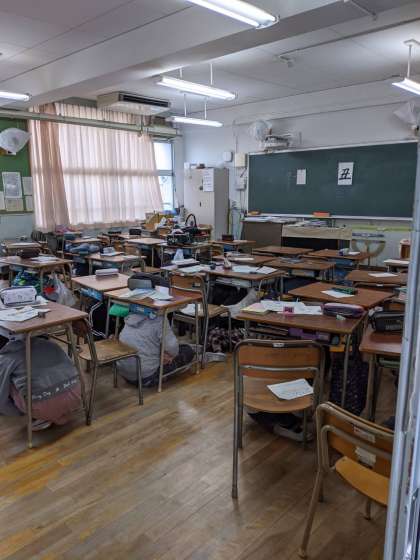 初めに、各教室で学習しているときに、
