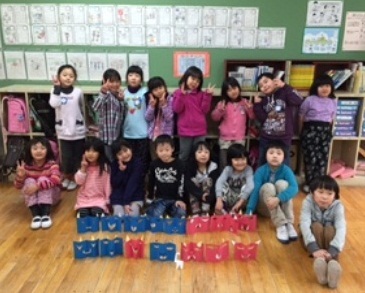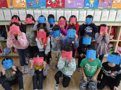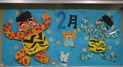 下段:2月の目標は、「げんきよくあいさつをしよう」です。相手の目を見て、大きな声であいさつしましょう!