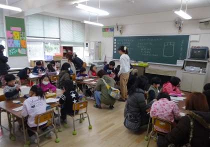 1年生は、2月12日(木)2時間目 に行う八幡屋保育所との交流会に向けて、おもちゃづくりをしました。交流会にもご都合がよければ御参加ください。