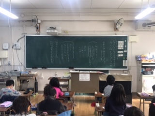 写真の2枚目は 朝会を放送で聞く1年生の児童の様子です。