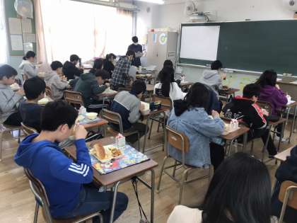 その後、給食が再開した話をしました。