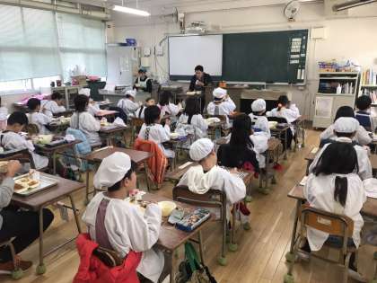 初めての給食の献立の話、クイズ、
