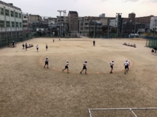 運動場で体育の学習をしました。