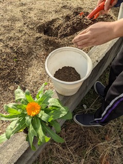 キンセンカの花を植木鉢に植え替えました。