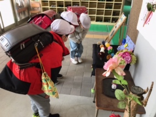 4年生の子どもたちが、玄関に集まっていました。
