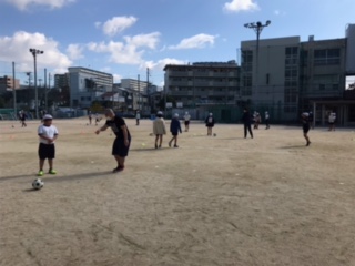 子ども達は元気にサッカーの運動をしていました。