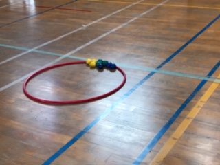目標球にいちばん近く投げた人が勝ちというゲームです。