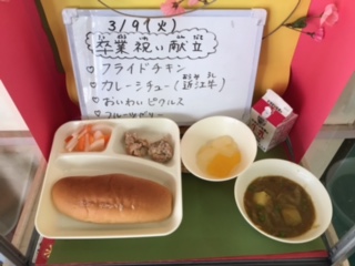 今日は 卒業遠足もあり 給食もお祝い献立で