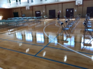 新しく生まれ変わった講堂の床。