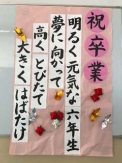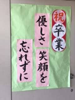 「卒業」を祝う気持ちを伝えようと掲示しました。