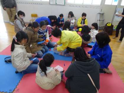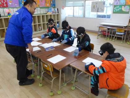 港区社会福祉協議会ひかりの方が装備を持ってきていただきました。思うように動けなかったり、目が見えにくく文字も書きにくかったり、高齢者の方の状況を体験することができました。