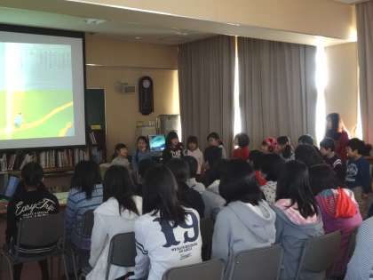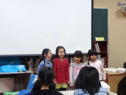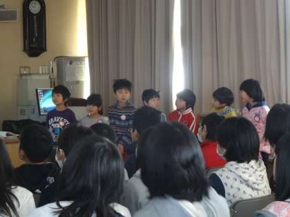 1年生がお世話になった6年生に感謝の気持ちをこめて読み語りをしました。