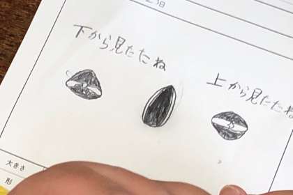 ひまわりの種を観察しました。