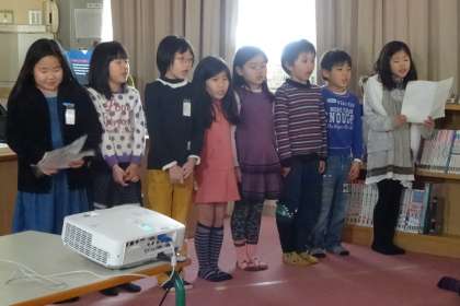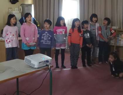 6時間目の図書の時間には、2年児童が、4年生に読み聞かせをしました。