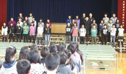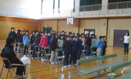 講堂では、卒業式に向けて練習をしています。呼びかけも歌もどんどんよくなっていきそうです。
