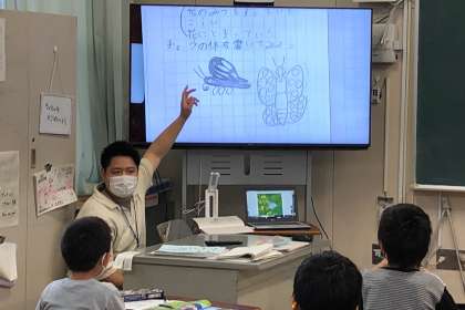 蝶々の学習をしました。この絵は、蝶々をよく知っている子が描きました。