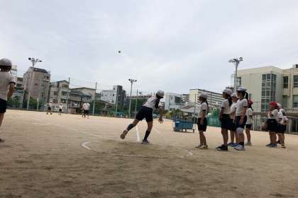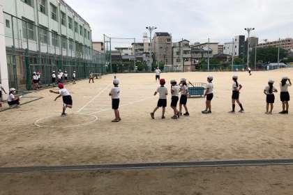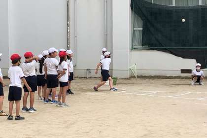 体力テストに向けて、ソフトボール投げを練習しました。