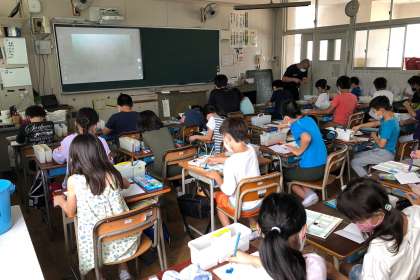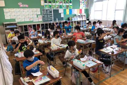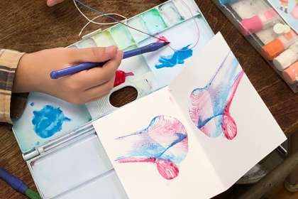 糸に色を施し、画用紙に挟んでだ後、糸を引くとグラデーションがとても綺麗に現れました。
