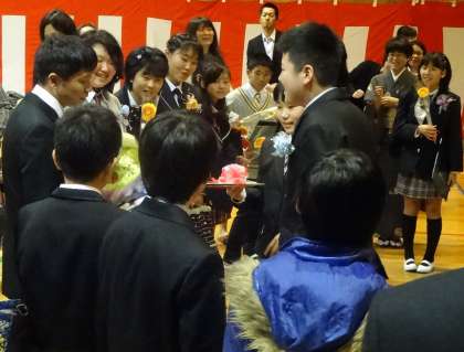 感動の一瞬です、担任の先生の目にはきらりと涙が♪