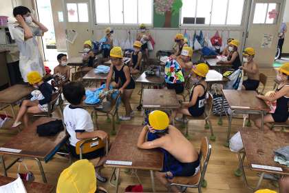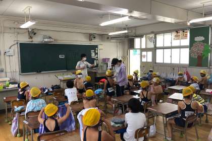 今日、雨天でプール水泳が中止となりましたが、次の時間スムーズに始められるよう、着替えの練習をしました。