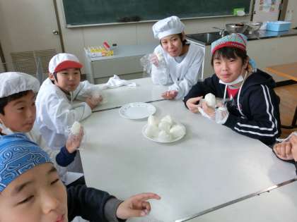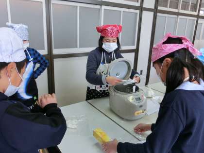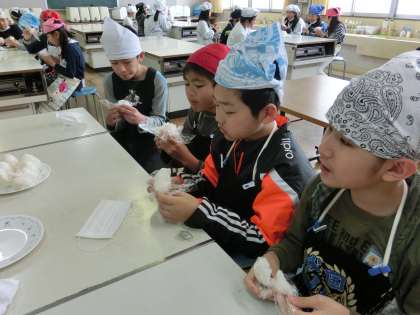 初夏から育てていた稲を精米し、修了式の前日にお米を炊いておにぎりの試食を行いました。八幡屋の「看板」の体験学習の「シメ」となりました。