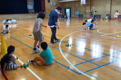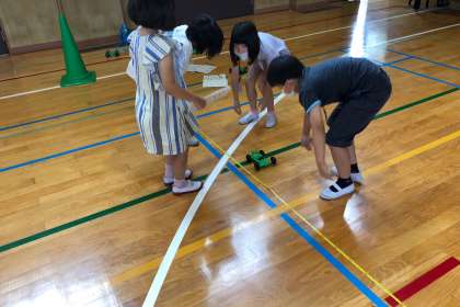 ゴムを伸ばす長さを変えると、ものの動きがどのように変わるのかを実験しました。