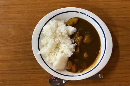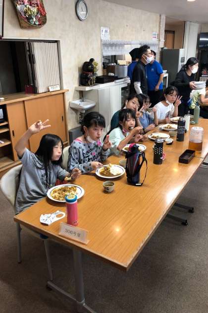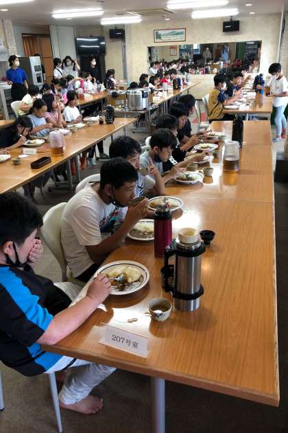最後の昼食は、作る予定だったカレーライスです。さっきスイカを食べたところですが、みんなすごい食欲です。