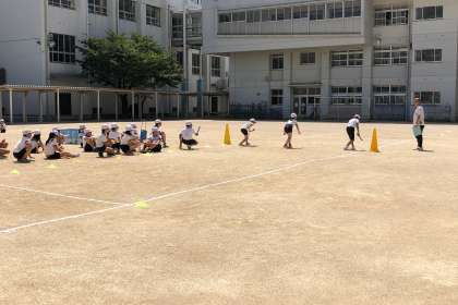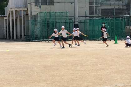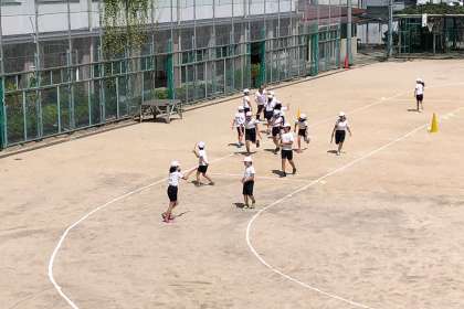 感染症対策として、バトンパスはバトンとバトン接触させてリレーの練習をしました。