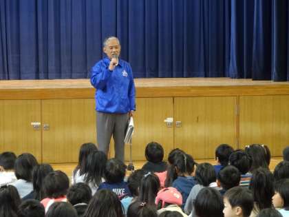 中:8日には「始業式」です。校長先生から「マスター」を目指そ うというお話がありました♪