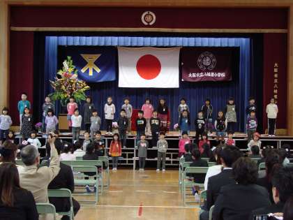 中:式では「2年生」が歓迎のセレモニーを披露しました(しっかりと練習したもんね)