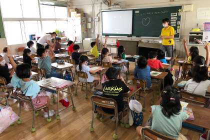 色を塗った絵が、先生のアプリを通すと動きだすとい驚きの絵です。