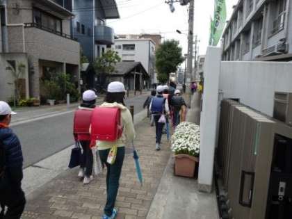 登校班ごとに集まり、1年生にとっては初めての集団下校をしました。上級生がうまくリードしてくれているようです。いざというときもこの班で集団下校をします。