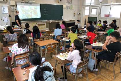 先生が指したローマ字を答えると、シールか折紙がゲットできます。