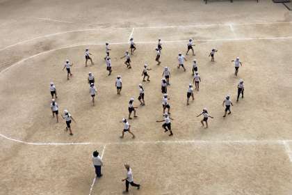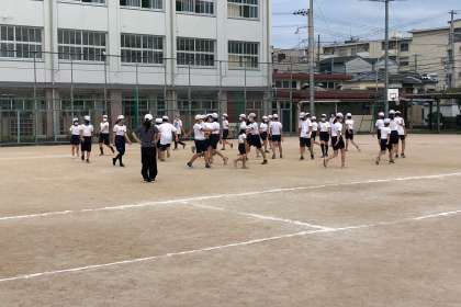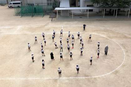 新しい隊形に取り組みました。二重の円から風車の隊形にしています。