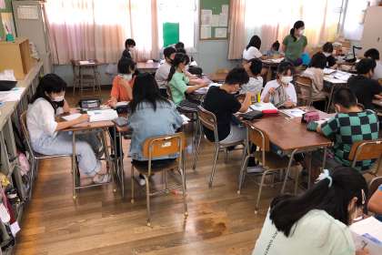 班ごとにに「海のいのち」の各場面に題名をつけ、人物関係図を考えました。