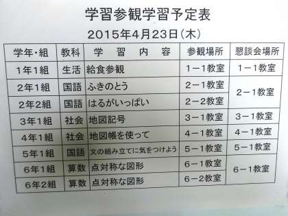2〜6年 学習参観 13:50〜14:35(1年 給食参観)