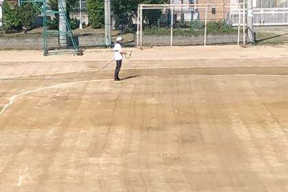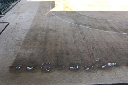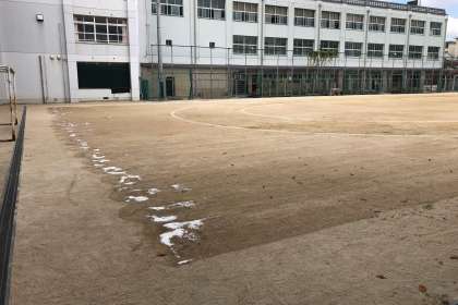 昨日、来週のスポーツ記録会に向けて、業者さんににがりをまいていただきました。そのあと降雨を期待したのですが、叶わなかったので、職員が水撒きました。