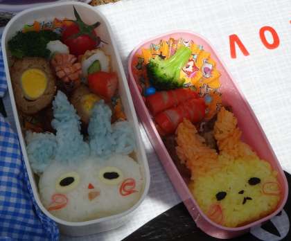 キャラ弁です。みんな小さい弁当箱にきれいにおかずがつまっていました。