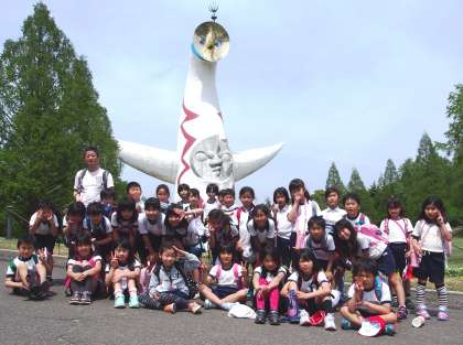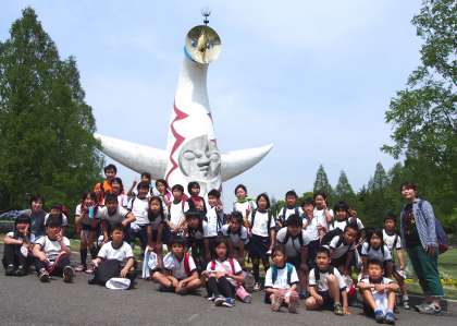 中段:下段:太陽の塔をバックに記念写真
