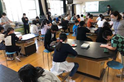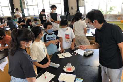 コップに吸い込まれるという実験をしました。みんなかなりの驚きようでした。