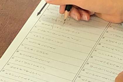 このプリントは、ことばが並べられているだけの行を見て、単語ごとで切るというものです。